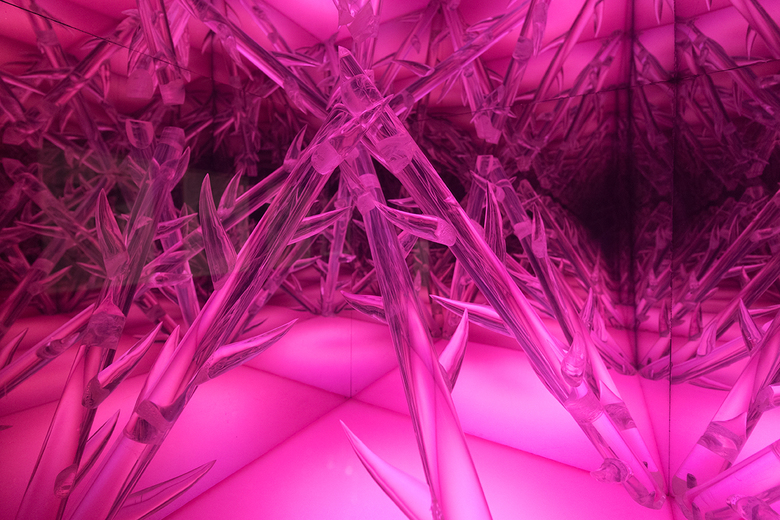 Inside are sculptures, including The World of Thorns (1968), a cubic construction of acrylic that nevertheless sees a repeated pyramidal form in the box's reflective surfaces.