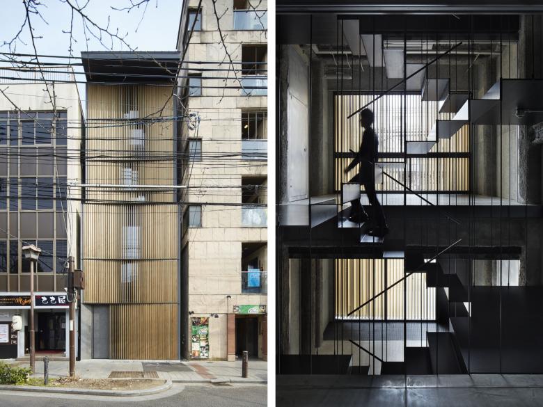 FB: Yes, but different. K8 in Kyoto is slightly bigger and, more importantly, it is one large contiguous space. In Kyoto, I saw the opportunity in a split level for a gallery and bar. You enter from the street and the thin steel plate of the center staircase lets you see that there is something going on half a level below and half a level above. You are drawn into the space, onto the staircase. As you walk up and turn, this process continues — there is always more within reach. We made the staircase wider than the required minimum to turn it into a space of its own.