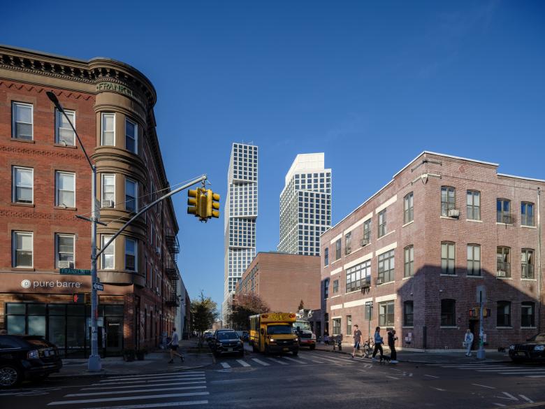 In addition to increasing physical separation between the tower and optimizing views, the massing breaks down the scale of the towers into blocks between four and eight stories tall, akin to the low-scale fabric of Greenpoint. (Photo: Jason O'Rear)