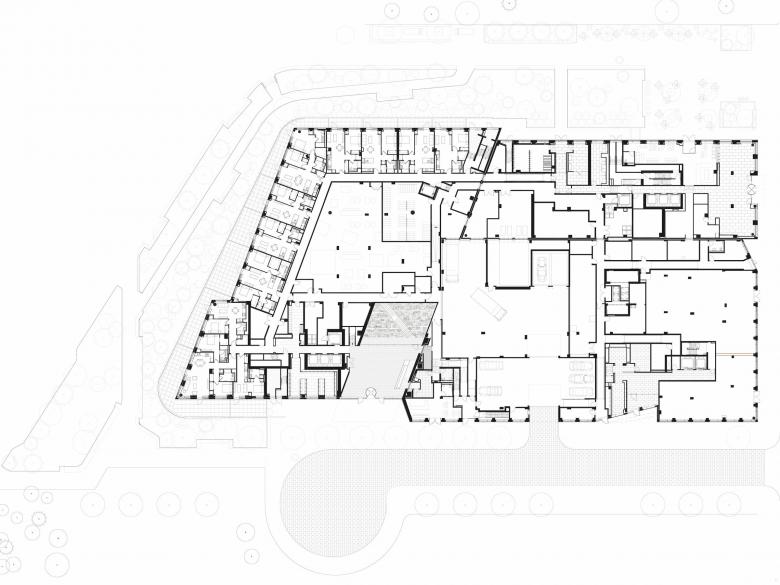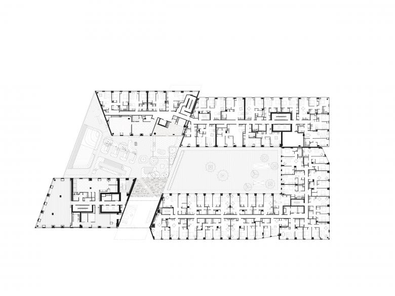 The second floor plan showing the shared outdoor spaces. (Drawing: OMA)