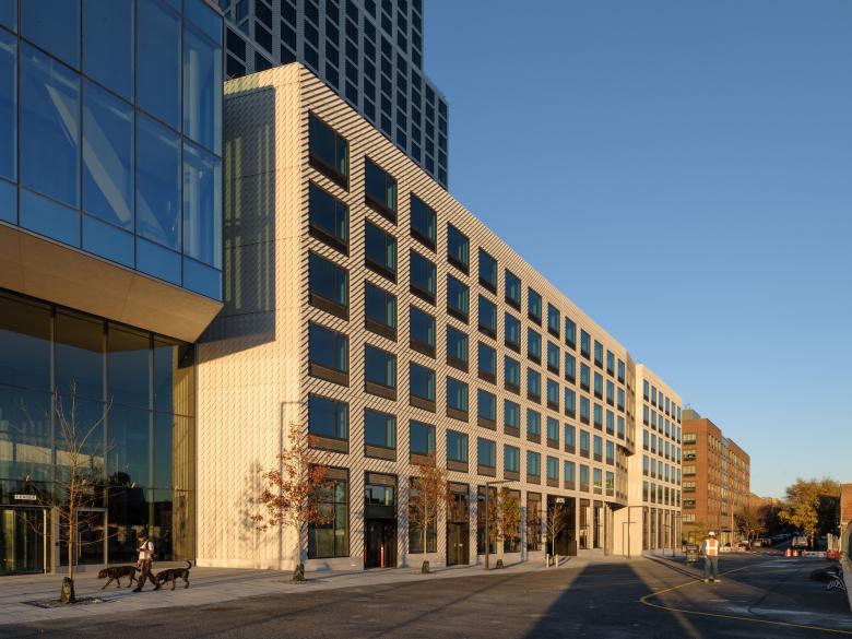 An extension of Eagle Street to the west provides access for loading and parking at the base of the 7-story low-rise seen here, where most of the project's 224 affordable units (versus 521 market-rate units) are located. (Photo: Ossip van Duivenbode)