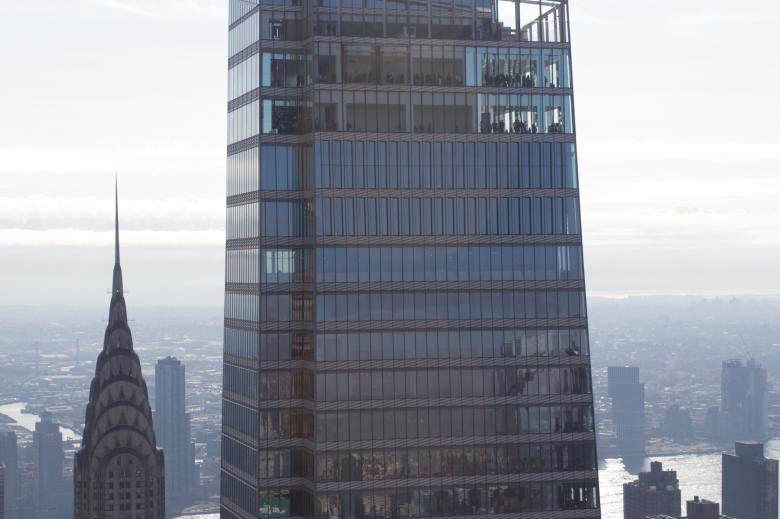 Photos from the tower's rooftop at 1,002 feet (305 m) above the street follow. Although the roof will not be accessible once the tower is complete, the 88th floor amenity suite for residents will be directly below it, meaning these views are not much different than what those lucky few will experience. Coming to the fore during our hard-hat tour was the location of the tower between four of Midtown's popular — and increasingly gimmicky — observation decks, each one clearly visible in a cardinal direction.