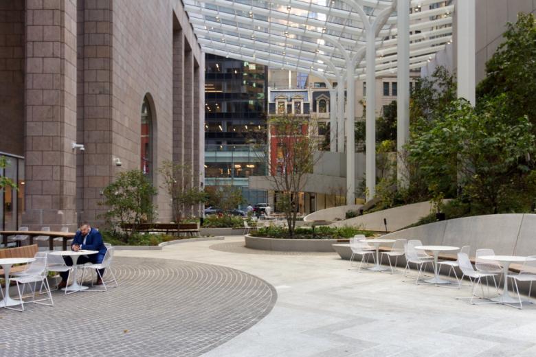 - The reimagined public space (pictured above) at the base of 550 Madison (aka the AT&T Building) opened to the public on November 16.