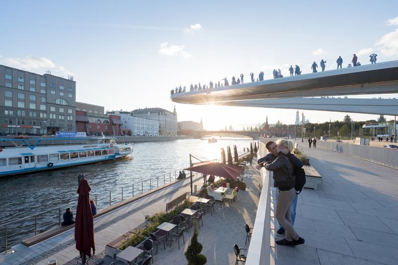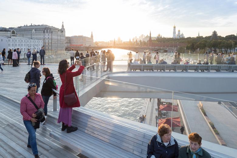 The "floating bridge" is the park's signature element and a modern symbol of Moscow. (Photograph by Iwan Baan, courtesy of Diller Scofidio + Renfro)