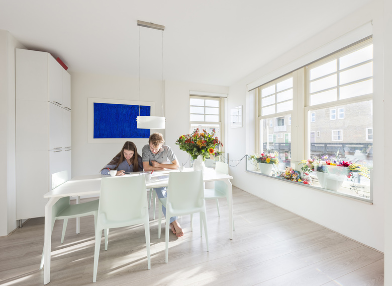 Justus van Effen is located in Rotterdam's Spangen neighborhood, which was rundown and dangerous in the 1980s and 90s but is enjoying a resurgence this century. Per the WMF/Knoll statement, "The project, which addresses all levels, from the building fabric to the public and urban domain, also reflects the commitment of the owner, Woonstad Rotterdam, to ensuring the future of the complex for future generations." Originally consisting of 261 dwellings, the restored project is made up of 154 units in a variety of layouts and sizes.