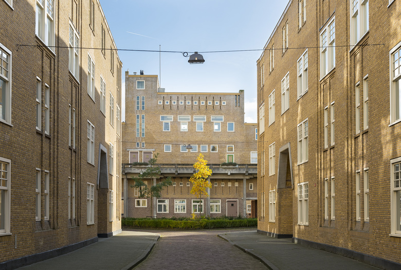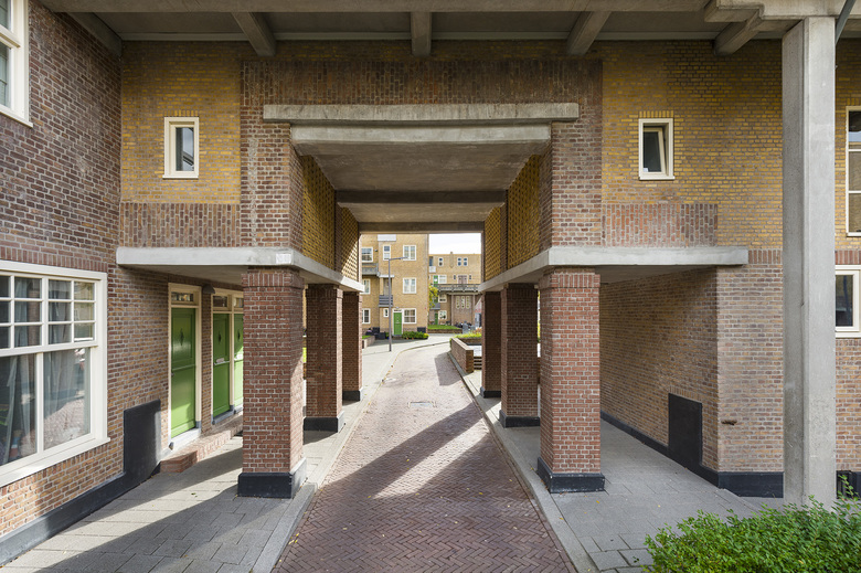 The Justus van Effen complex was designed by Michiel Brinkman and completed in 1922. Although not as well known as, for instance, Michel de Klerk's Het Schip worker's housing in Amsterdam (1920), Brinkman's social housing was influential in its time, particularly through the elevated "streets" that WMF and Knoll describe in a statement as "a means of facilitating social cohesion."