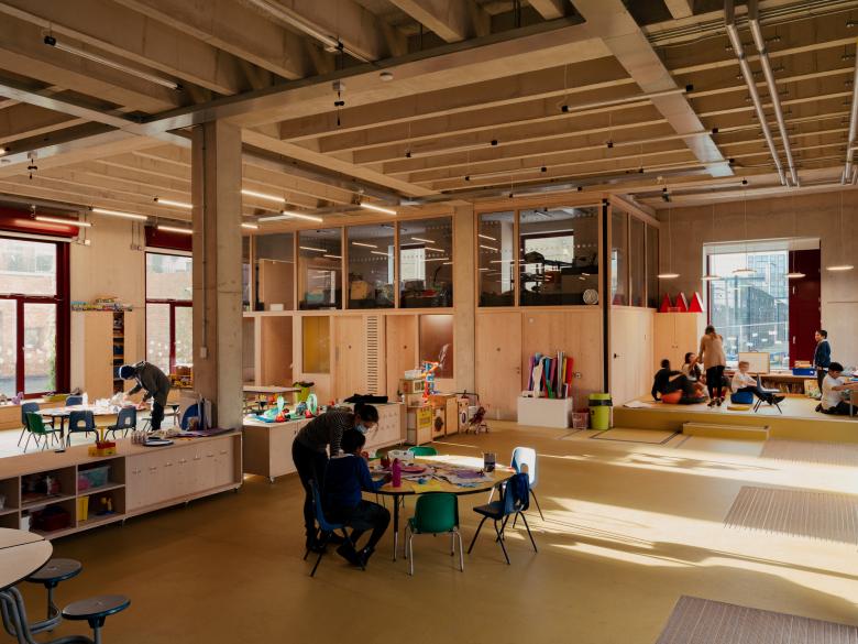 Building community and tackling inequality: Playfully designed spaces, arranged around a small park in London’s Camden. Contributing to a wider regeneration plan, the development provides local residents with social housing, an after-school club, a very generous adventure playground, and includes premises for a theatre education charity.”