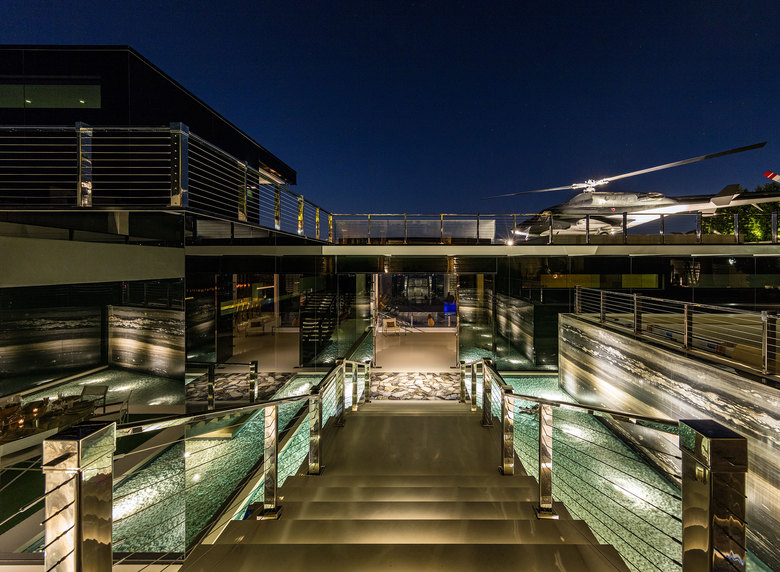Curiously, the developer and none of the press coverage mentions the architect responsible for the "innovative contemporary estate." Some of the building permits for the property list Roman James Design Build, which bills itself as "the ultimate tri-fecta in the industry [that] designs and oversees all architecture, floor plans, exterior elevations, permits and engineering, interior design, pool and landscape." The firm was responsible for the design and build of Makowsky's $70 million mansion in Beverly Hills, so it's safe to assume they did the same at 924 Bel Air Road. (It's impossible to confirm from their website, though, since it has not been updated since the Beverly Hills project, but a correspondence with the firm did confirm their involvement.)