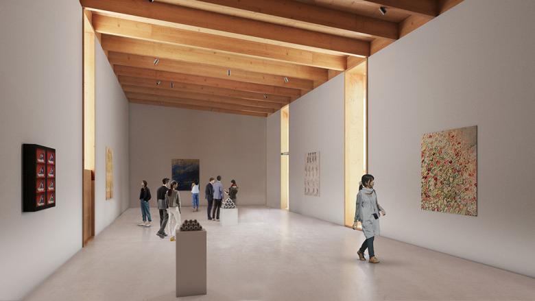In a statement from the Vancouver Art Gallery, Binswanger said, "The building now combines two materials, wood and glass, both inseparable from the history and making of the city. We developed a façade out of glass logs which is pure, soft, light, establishing a unique relation to covered wooden terraces all around the building." Unfortunately, the renderings supplied by the Gallery do not reveal how the architects envision the spaces behind the glass logs. Instead, the interiors we see are variations on traditional white-box galleries, with wood beams above plaster walls punctuated by full-height windows.