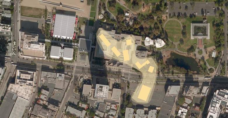Building footprint spanning Wilshire Boulevard (Image: Atelier Peter Zumthor & Partner/The Boundary)