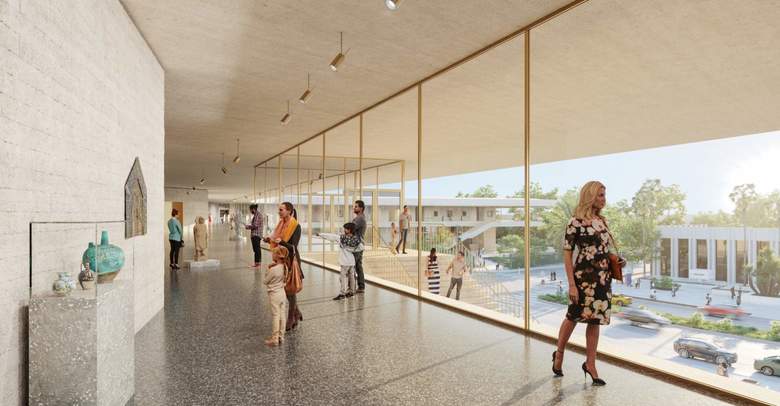 The renderings that were released with the final environmental impact review (FEIR) as part of the county's approval were pretty lackluster; also they didn't include any peeks inside the galleries, which were cut down considerably from previous designs. The latest renderings, visible below and available on the Building LACMA website, are more polished and pervasive, virtually lifting us above the museum grounds and taking us inside to the galleries that "meander" along the glass walls and continue deep inside the "organically shaped" footprint.