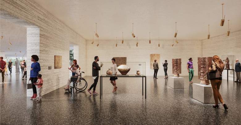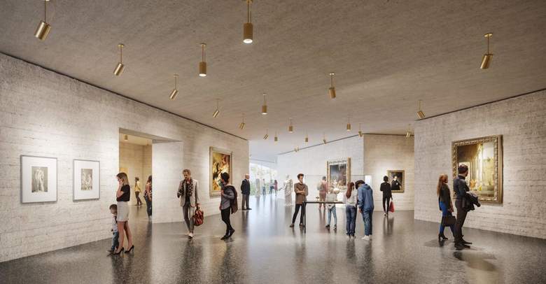 View southwest from Hancock Park, Pavilion for Japanese Art on the far right (Image: Atelier Peter Zumthor & Partner/The Boundary)