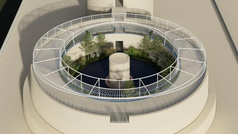 The installation on the roof of the cylindrical museum will overlook a garden designed by landscape architect Hwang Ji-hae. The garden was created with local plants from the mountains surrounding the museum.