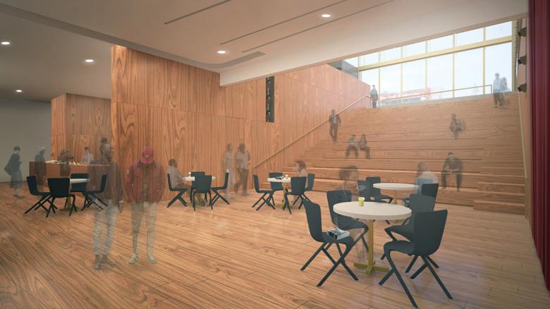 Per a statement from the Studio Museum, "David Adjaye’s design provides the Studio Museum with a dynamic, sculptural facade that contrasts strongly with the surrounding commercial buildings. The building has a porous, welcoming presence at street level, a light-filled core that soars up through the entire interior, and a tiered public hall, which the architect has likened to an 'inverted stoop' that invites people to step down from the street into a multiuse space that will be free and open to the public during Museum hours and used for presentations and informal gatherings."