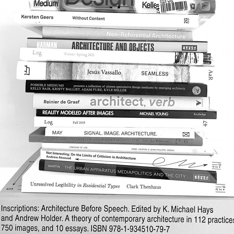 Only one text is specifically mentioned in the open call — Elise Iturbe's “Architecture and the Death of Carbon Modernity” from Log 47: Overcoming Carbon Form — but it is included to illustrate the formatting people should use for their citations, not as an ideal nomination. The photograph of a pile of books that is being used in social media posts gives one or two clues, with books by Reiner de Graaf, Reinhold Martin, Valerio Olgiati, Keller Easterling, and others in the stack, as well as edited collections on display and Log making multiple appearances. While the stack shows a preference for texts in English written by scholars in the US and Europe, “open to all” means people from other places should nominate texts in other languages as well.