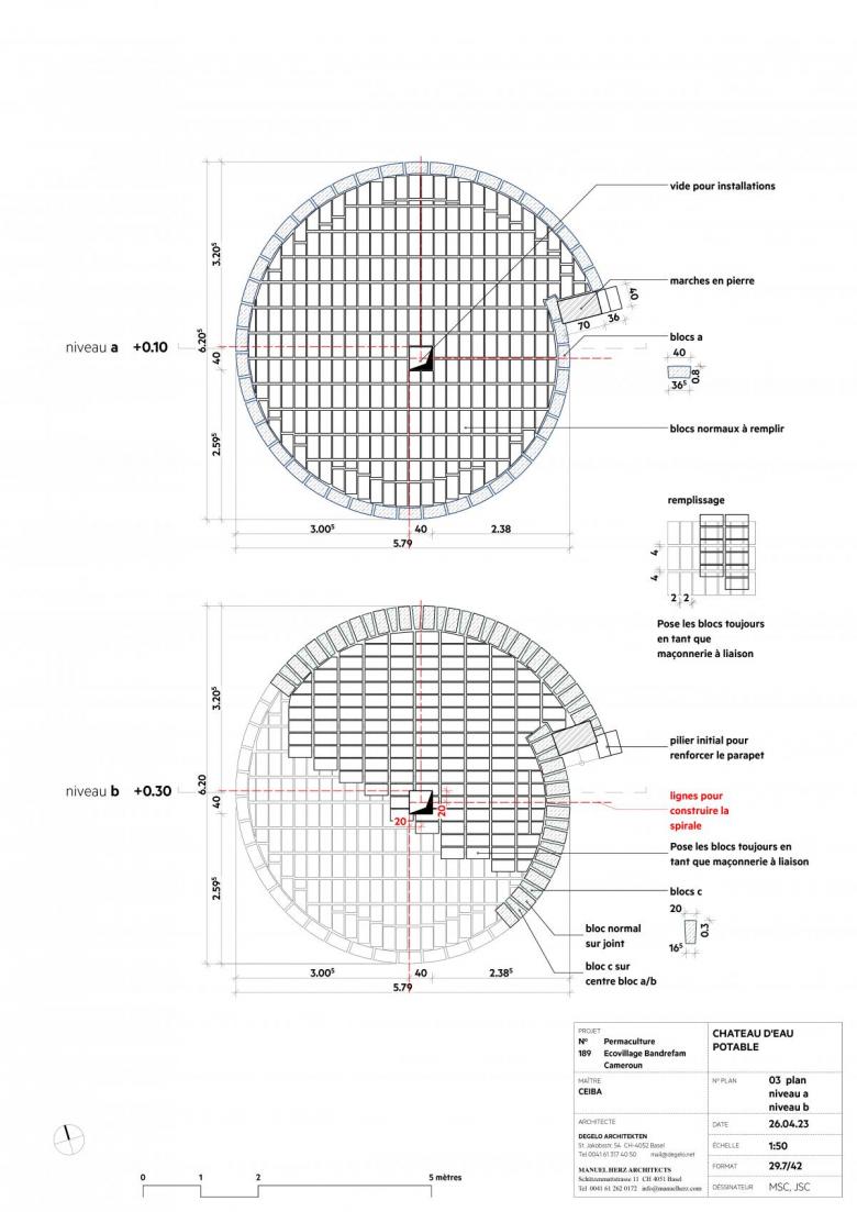 Level A and B floor plans of water tower (Drawing © Manuel Herz Architekten und Degelo Architekten)