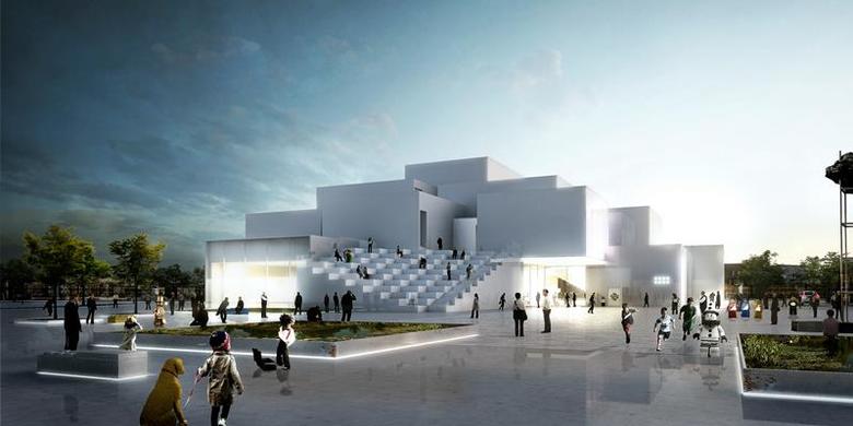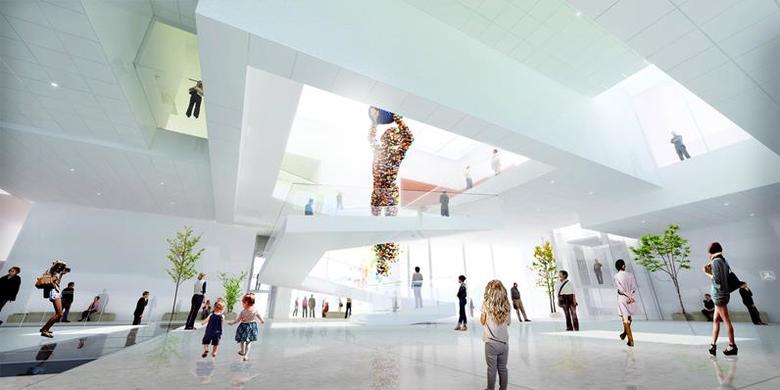BIG – Bjarke Ingels Group's design for the 12,000sm (130,000sf) museum, which was unveiled in June 2013, treats the building as if it were made from supersized LEGO bricks, culminating in a skylight with a grid of round openings over the 2,000sm (21,500sf) covered square. In a statement on the occasion of the groundbreaking, Bjarke Ingels says this of the museum:
