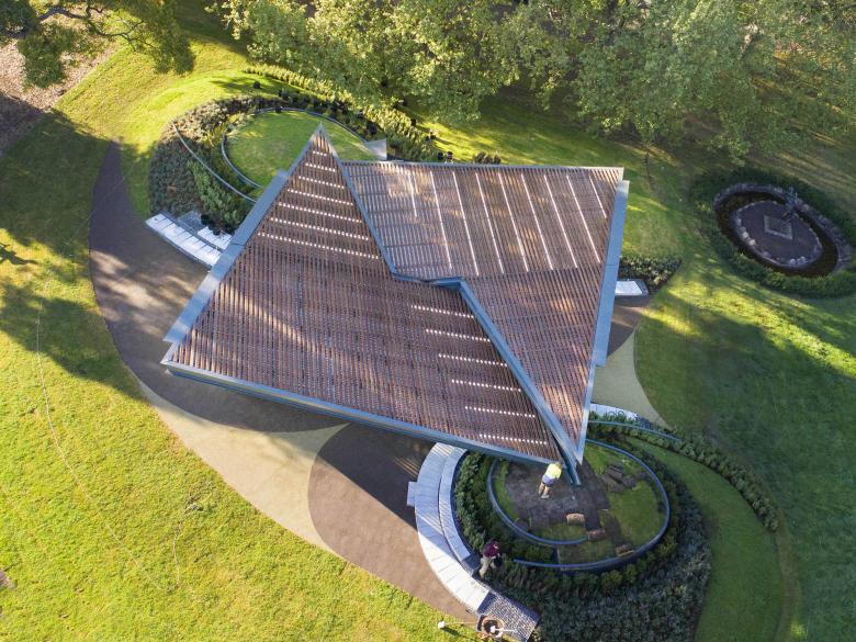 First unveiled in July, the design by Carme Pinós is made up of sculptural, origami-like planes of latticed timber bent to form roofs. The roofs touch down at three mounds that are rung by seats for the various activities that will take place at the pavilion. In a statement on today's opening of the MPavilion, Pinós said, "In designing this year’s MPavilion, I wanted firstly to make a space for the people of Melbourne to feel connected — to each other, to the city they live in, and to nature. We are all part of the world, and architecture can tell that story and provide a place for us to experience life together. I hope the MPavilion becomes a flow of knowledge and creativity this summer."