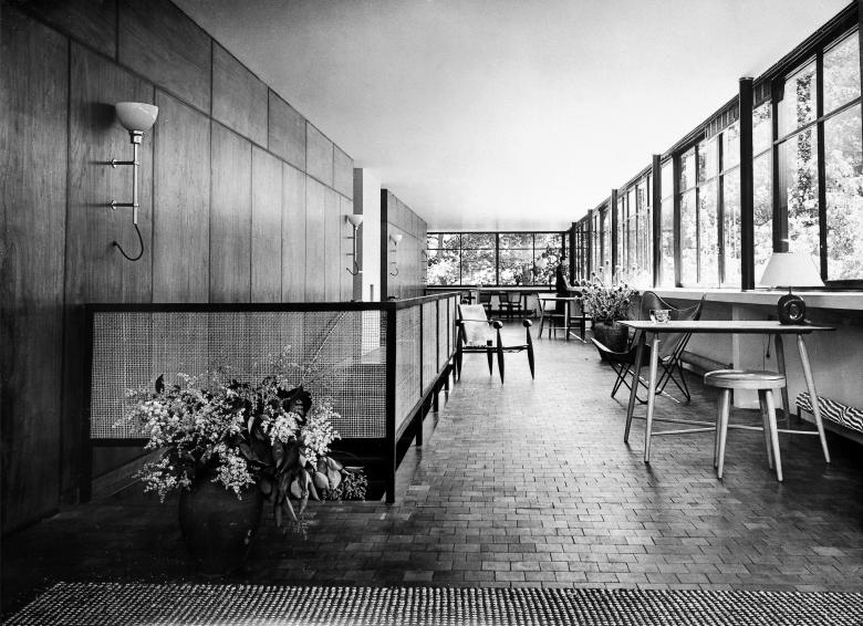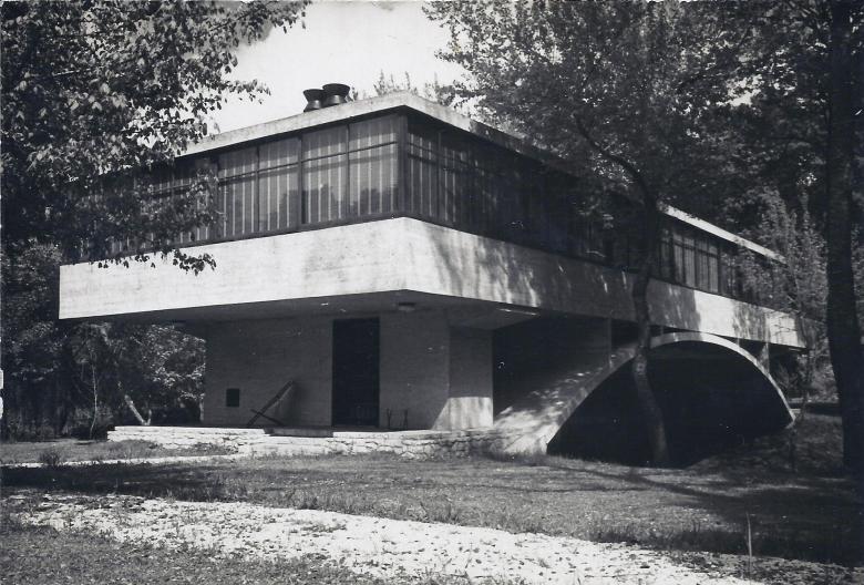Shortly after Amancio Williams (1913-1989) graduated from the University of Buenos Aires in 1941, his father, composer Alberto Williams, commissioned him to design a house a five-acre piece of property in Mar del Plata. Completed in the middle of the decade, the rectilinear 90-foot (27m) long and 30-foot (9m) wide house bridges a brook that wends across the property, bringing to mind both Frank Lloyd Wright's Fallingwater, completed in 1938, and Mies van der Rohe's unbuilt Resor House, also of 1938. Comparisons to the latter are apt, not only because the Resor House would have straddled a creek, but because the arcing concrete structure employed by Williams, in combination with the cantilevered roof slab, allowed for ribbon windows wrapping all four sides of the house and enabled panoramic views akin to those imagined by Mies in collage form.