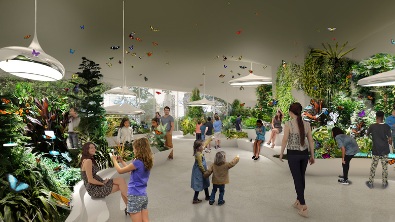 Butterfly Vivarium: A rendering of the year-round Butterfly Vivarium on the second floor of the Gilder Center, which will feature a variety of opportunities to encounter live butterflies and observe their behaviors in various “environments,” including a meadow and a pond. (Image courtesy of Ralph Appelbaum Associates)