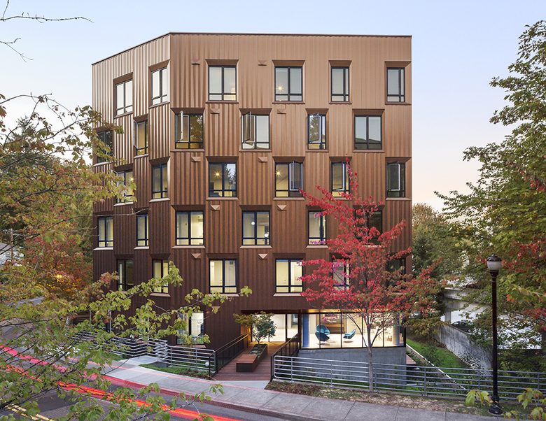 LEVER Architecture's TreeHouse, a mixed-use building for the Oregon Health and Sciences University in Portland, was featured previously as a US Building of the Week. Thomas Robinson the need to address a steep and constricted campus site led him to "[place] the building as an 'in the round' object in the forest. Instead of cutting into the hill, the building form is carved to follow the landscape."