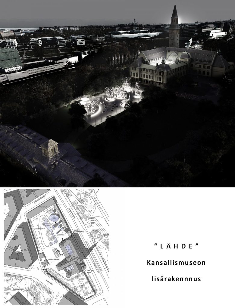 The National Museum of Finland is centrally located in Helsinki very close to other cultural and institutional attractions, including Alvar Aalto's Finlandia Hall, Steven Holl's Museum of Contemporary Art Kiasma, and the recently completed Helsinki Central Library Oodi; each building can be glimpsed in the aerial renderings submitted by the five finalists.