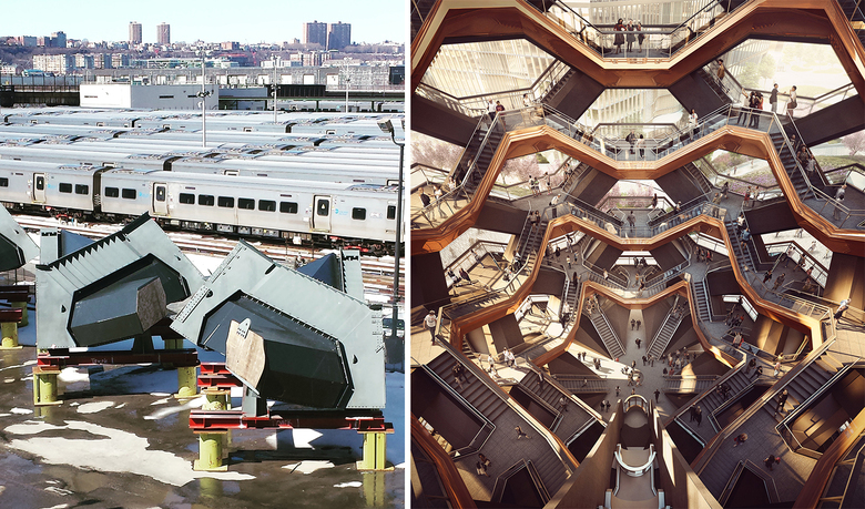 In more promising news for Heatherwick, a recent visit to the High Line revealed prefabricated stairs in a staging area alongside the Hudson Yards; these are part of his Vessel, which will be centerpiece of the Hudson Yards development now under construction.