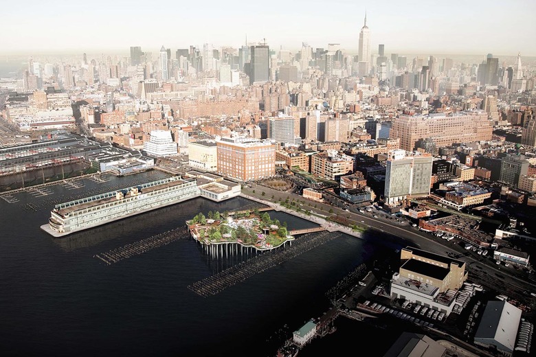 The public-private project was announced in November 2014 by the Hudson River Park Trust and the Diller – Von Furstenberg Family Foundation Alliance, the latter acting as the primary funder for the park. The initial design propped the artificial, 2.4-acre landscape with three performance venues upon 300 mushroom-cap columns that would rise from the Hudson River.