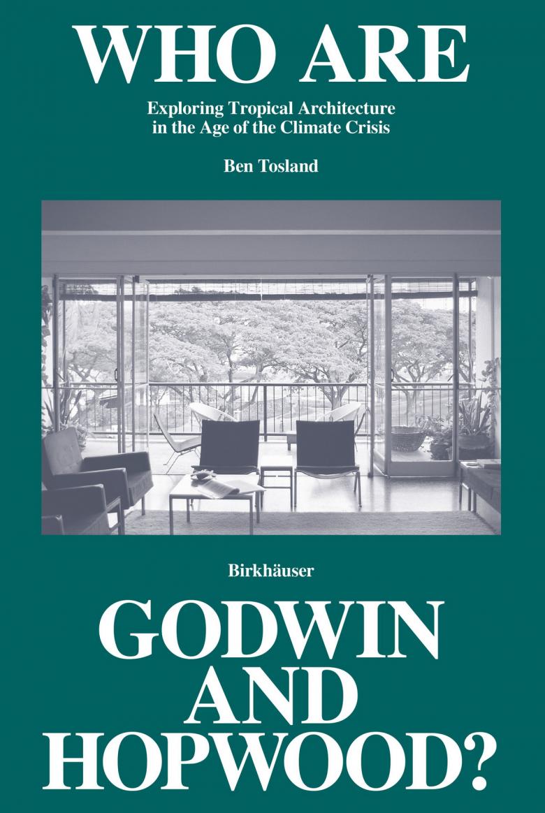 Cover of Ben Tosland's Who Are Godwin and Hopwood? Exploring Tropical Architecture in the Age of the Climate Crisis, a historical monograph devoted to the practice of John Godwin and Gillian Hopwood, published by Birkhäuser in 2024. (Photo: Birkhäuser)