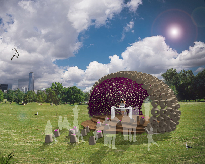 "After a four-hour-long deliberation, the jury was deadlocked in deciding between the Billion Oyster Pavilion and Organic Growth Pavilion," according to a statement from the competition organizers, FIGMENT, the Emerging New York Architects Committee (ENYA) of the American Institute of Architects New York Chapter (AIANY) and the Structural Engineers Association of New York (SEAoNY). FIGMENT's David Koren explained: "The jury saw that the Billion Oyster Pavilion and Organic Growth were both incredibly interesting designs that interpret the competition brief in completely different ways. If we can build them both, perhaps we can create some really exciting dialogue around temporary architecture and sustainability."