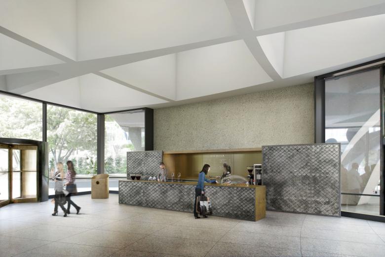 Sugimoto, working with Tokyo's New Material Research Laboratory (NMRL), will retain the original building's terrazzo floor, coffered ceiling, and exposed concrete walls, focusing on enhanced accessibility and visitor experience. He will reconfigure the entrance and insert elements of his own design, including furniture, welcome desks, signage, and a 20-foot coffee bar. Furthermore, a light sculpture by Iceland's Olafur Eliasson will be inserted into the space.
