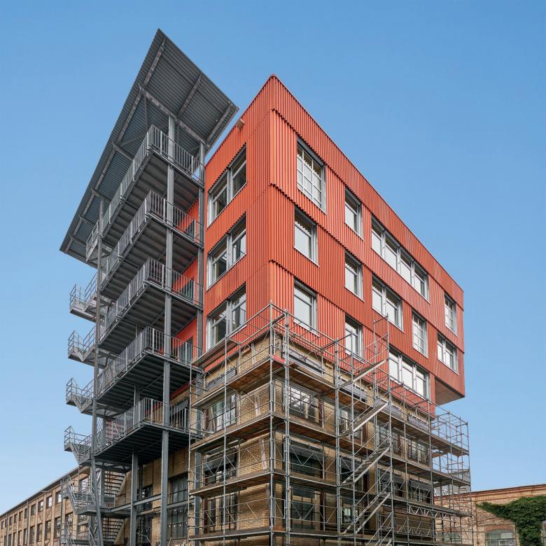 Gold was given to an industrial building in Winterthur, Switzerland, that was transformed into offices and studios by baubüro in situ. Titled "Extending the Cycle" but also known as K118, the project repurposed and added three floors to the building, limiting its construction to primarily old building elements. When it was not possible to reuse elements from nearby buildings that were dismantled, the architects used natural materials and erected the project so it could be easily disassembled in the future.