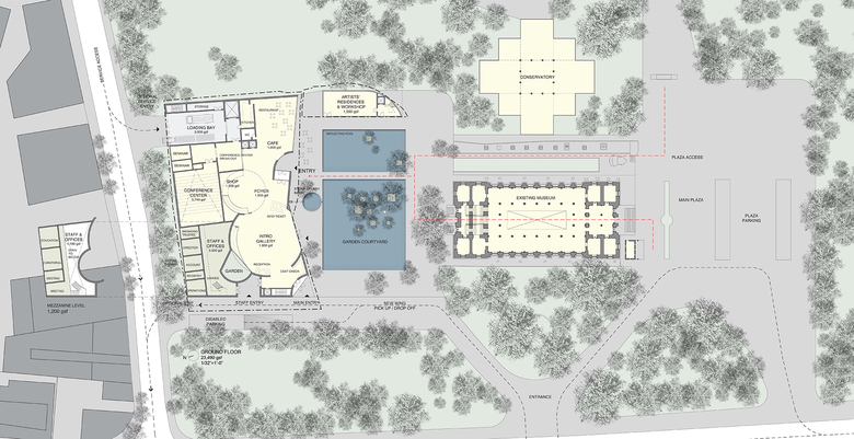 From Steven Holl Architects: Mumbai's oldest museum garden in Byculla will have a 125,000 sq ft new wing. The Mumbai City Museum's North Wing addition is envisioned as a sculpted subtraction from a simple geometry formed by the site boundaries. The concept of "Addition as Subtraction" is developed in white concrete with sculpted diffused light in the 65,000 sq ft new gallery spaces. Deeper subtractive cuts bring in exactly twenty-five lumens of natural light to each gallery.