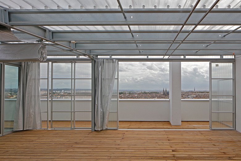 The project, designed by Lacaton & Vassal architectes with Frédéric Druot Architecture and Christophe Hutin Architecture, is the renovation of three large apartment buildings in Bordeaux, France, for AQUITANIS, the home public office of Bordeaux Métropole. The Grand Parc Bordeaux project added 4-meter deep "winter gardens" to the facades of the social housing buildings dating to the 1960s. Completed in 2017, the transformation cost 50,000€ per dwelling and was done without any residents being displaced during construction nor with any rent increases. The project also consisted of a rooftop addition providing more apartments.