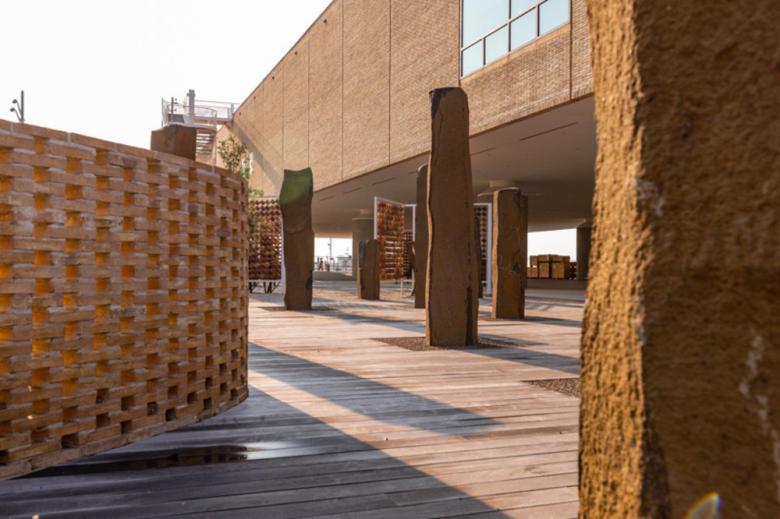 The African Ancestors Memorial Garden embraces the entire site, deploying elements of low-country landscape as it celebrates the arts, crafts, and labors of African Americans. (Photo © Sahar Coston-Hardy/Esto)