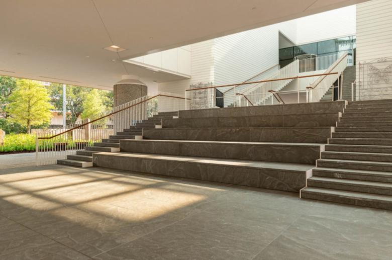 Visitors ascend a monumental stair, drawn into the museum through a luminous atrium at the center of the building. (Photo © Mike Habat)