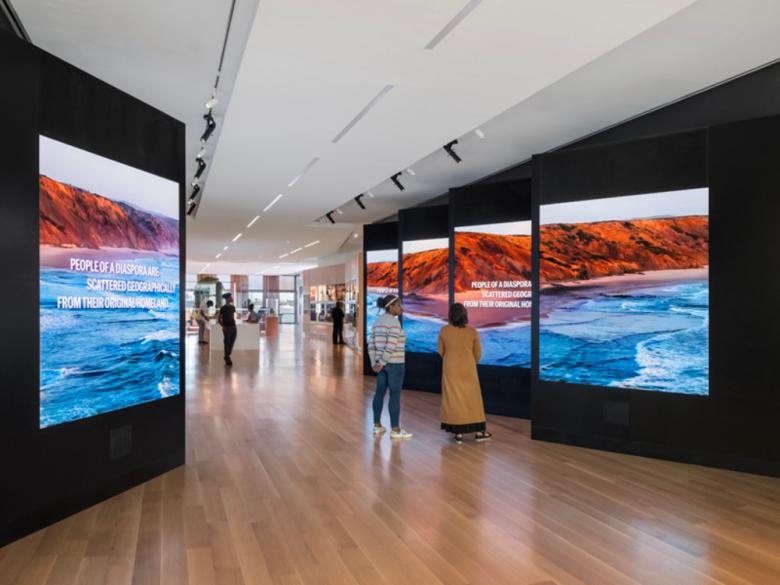 South Carolina Connections gallery in the east wing, with entry atrium beyond (Photo © Sahar Coston-Hardy/Esto)