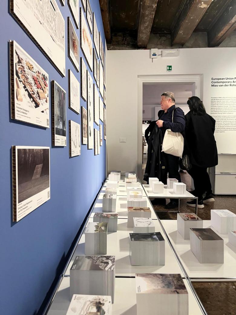 The exhibition Intelligens. Talent. EUmies Awards Young Talent 2025, a collateral event of the 19th International Architecture Exhibition – La Biennale di Venezia, opened to the public on May 9, revealing the finalists of the EUmies Awards Young Talent 2025 and Young Talent Open 2025, dedicated to master's theses in architecture, landscape architecture, and urban planning. The exhibition, organized by the Fundació Mies van der Rohe, is on display at Palazzo Mora in Venice until November 23.