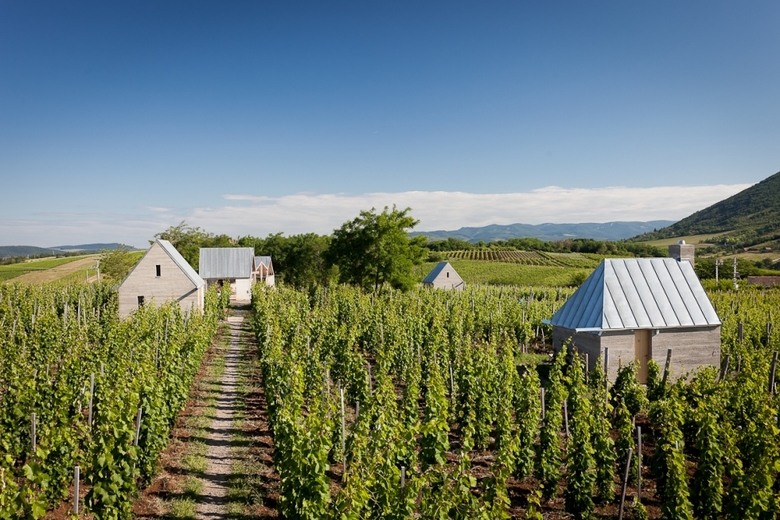 From the 36 nominated projects culled from 8 countries in the Alpe Adria region and Central Europe, the Piranesi Award was given to the Wine Terrace and Spa in Eger, Almagyar, Hungary, designed by Péter Gereben and Balázs Marián of Gereben / Marián / Építészek. The jury* "commended the elegance of the site strategy in composing the buildings into the site which is reinforced by the materiality of the building. Roof of the main building is both vernacular but also modern and playful solution."