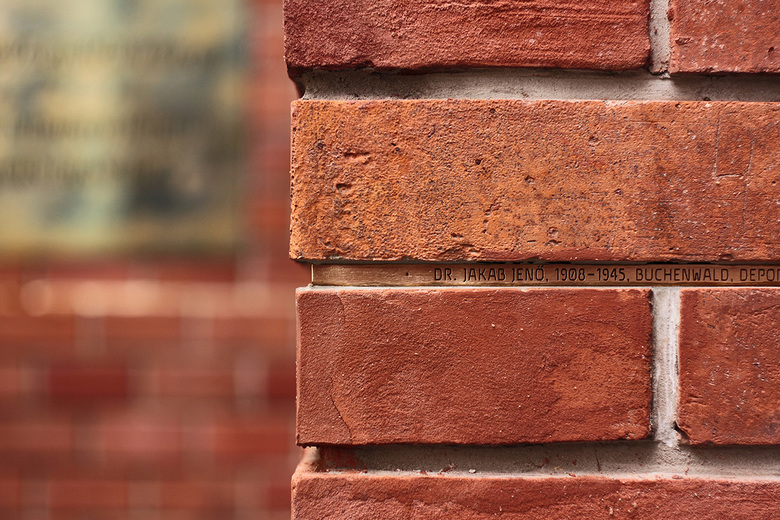 In regards to the memorial in Budapest, the jury commented: "This memorial very powerfully, but discreetly embeds within the building fabric of the university buildings the name register of 198 Jewish teachers and students killed during World War II. The project avoids the big gesture and is an exemplar in the art of "Less is More." In spite of its length of 280m, this memorial remains invisible to those who do not wish to see or find, but it evokes the most powerful memory for those who wish to know and find."