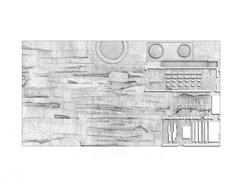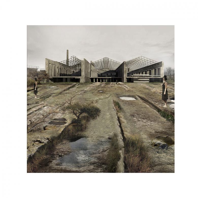 From the 22 nominated student projects hailing from 12 european faculties of architecture (Graz, Vienna, Spittal, Split, Zagreb, Pescara, Trieste, Budapest, Ljubljana, Maribor, Thessaloniki, and AA London), the student honorable mention was awarded to Terrain Anamorphosis designed by students Antonia Gerogianni and Zoi-Niki Eleftheriadi from Thessaloniki, Greece, under mentors Aleka Alexopoulou and Anastasia-Sasa Lada. Depicting industrial brownfields given back to nature, the jury liked the way the scheme created "the capacity to dream" and commended the outstanding artistic representation.