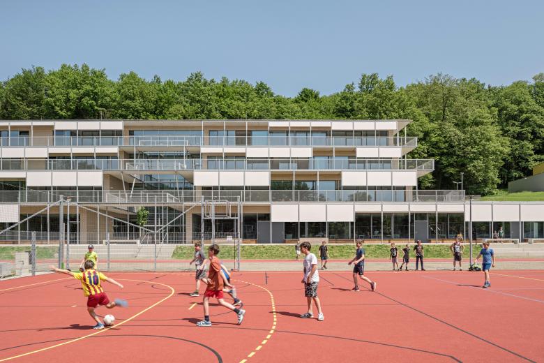 Two honorable mentions were also decided, including Wienerwaldgymnasium Tullnerbach in Tullnerback, Austria, by Vienna's fasch&fuchs.architekten, completed in 2023. The jury wrote: “The modularity, obviously referring to the language of modernism, structures the functional areas within the footprint of the school in a very convincing way. Additionally, this strategy has also the benefit to successfully anchor the building to its surrounding. In this sense the shape of the building offers a remarkable number of terraces on the outside and at the same time creates a very atmospheric and open access area.”
