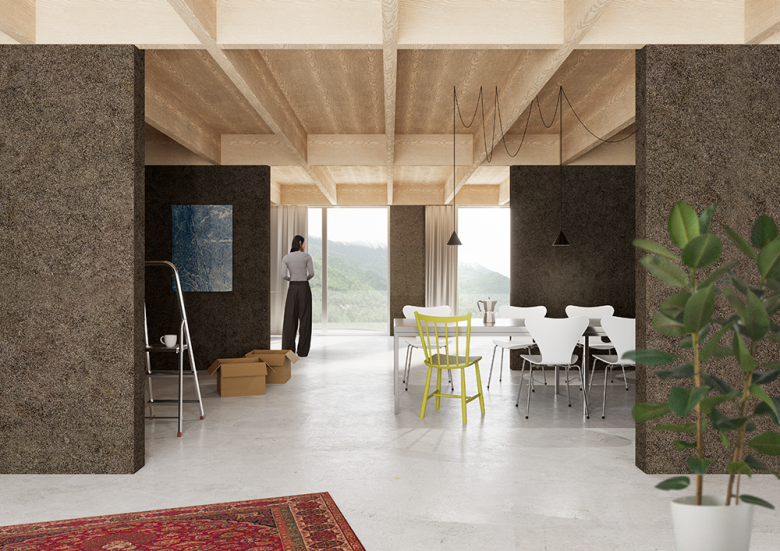 Lastly, one student honorable mention was selected from the 40 students projects nominated by 20 European schools of architecture from Graz, Spittal, Vienna, Banja Luka, Sarajevo, Split, Zagreb, Thessaloniki, Budapest, Pescara, Vaduz, Podgorica, Belgrade, Kragujevac, Novi Sad, Bratislava, Ljubljana, Maribor, Lucerne, and London. The jury selected The Longhouse, a project designed by Ela Grasselli, a student in Jesenice, Slovenia, under professor Maruša Zorec and Dr. Uroš Rustja.