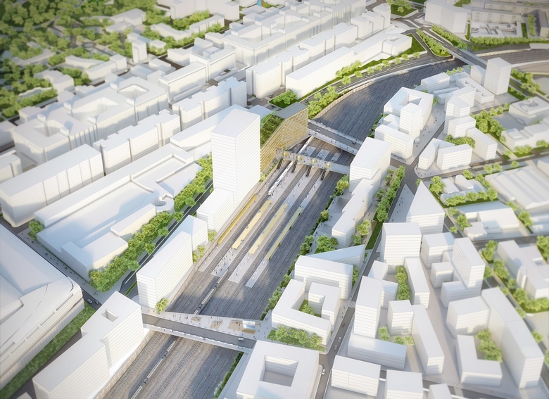 The new station is planned on a rail area adjacent to the former industrial site ‘Les Groues’ which will be transformed into a lively urban district with space for living and working until approximately 2025. ‘The new station is the first step in the development of Les Groues. The bridges connect the area with the city and the station allows to significantly improve public transport to Paris and the West,’ says Xavier Blaringhem, responsible for French projects at KCAP Zurich. Station RER E Nanterre is one of three newly planned stations of the 47 km extension in Western direction between Paris and Mantes, expected to be used by 600,000 to 700,000 people per day.