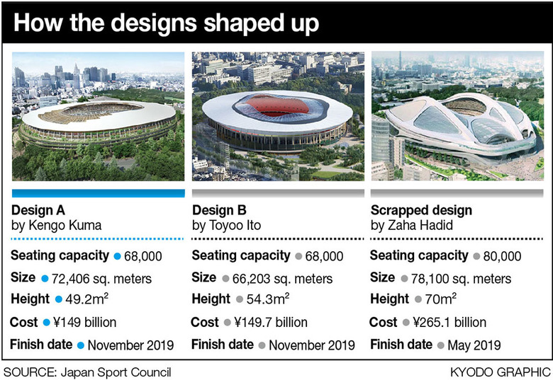 According to The Japan Times article, Kuma's scheme bested Ito's by only 12 points – 620 points to 608 pionts –in the Japan Sports Council's judging: "Tipping the balance was the estimated construction time. While both teams projected that construction would be done by November 2019, design A received 177 points in this category, but design B got only 150. Architect and critic Takashi Moriyama said the 27-point difference could be attributed to the panel taking a cautious stance so as to avoid making the same mistake as was made in July," when Hadid's design was abandoned.