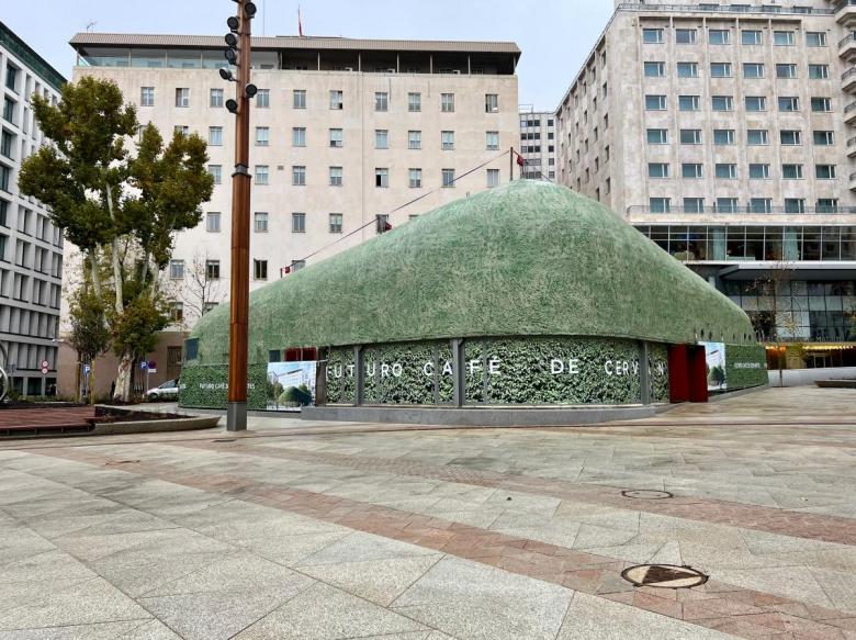 The trees — one thousand of them were planted — are one of the most characteristic elements of the project. The existing trees in the old Plaza de España were taken to a nursery to allow structural reinforcements of the underlying parking lot, then replanted in different locations. Above the parking lot, the square's pavement has been treated like a large playing field and is equipped with facilities for events such as flea markets or concerts. The other part of the square has been treated as a park, with playgrounds for both children and adults, and deciduous trees. The monument to Cervantes remains in place, but a cafe has been installed next to it, one that will eventually be completely covered with climbing plants.