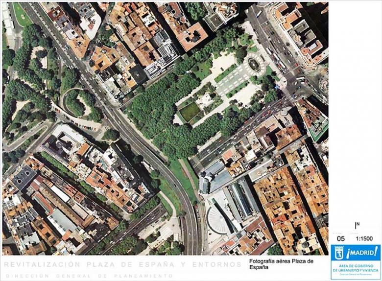 The idea of remodeling the area around Plaza de España was born during the term of Mayor Manuela Carmena. The change of ownership of the Edificio España that currently houses the Hotel Riu Plaza España was the trigger for a political debate on the fate of the entire area that was then in a very degraded state. The debate gave life in 2017 to an international competition that was won by architects Fernando Porras-Isla, Lorenzo Fernández-Ordoñez, and Aránzazu La Casta (Porras Guadiana Arquitectos) — already co-authors, with architects Burgos y Garrido, Rubio & Álvarez-Sola, and West 8, of the Madrid Río park inaugurated in 2011 — with the project submitted under the slogan "Welcome Mother Nature."