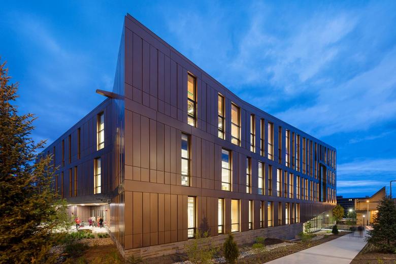 Leers Weinzapfel's design, as the firm described it in a May 2017 interview, is "a dynamic space of exchange, collaboration, and experiment, celebrating a shared commitment to sustainability." This commitment is manifested in a CLT (cross laminated timber) structure – the largest mass timber academic building in the U.S. – that demonstrates sustainability to the design students occupying it.