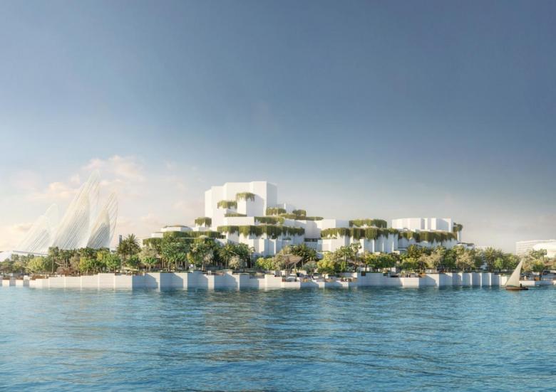 The latest project unveiled for the Saadiyat Cultural District will join an impressive assemblage of completed and in-progress icons designed by famous architects, including Jean Nouvel's Louvre Abu Dhabi (open since 2017, visible in rendering at top), Frank Gehry's off-again, on-again Guggenheim Abu Dhabi, Zaha Hadid's Performing Arts Center, Norman Foster's Zayed National Museum (under construction, visible in the second rendering), and Tadao Ando's Maritime Museum — all on a patch of land just one square mile (2.6 km2) in area.