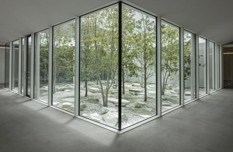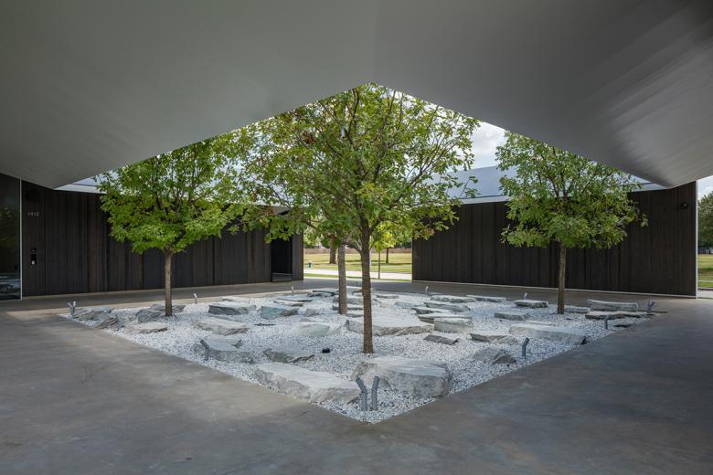 The open-roofed, landscaped courtyard on the west serves as the building’s entrance. (Photo: Richard Barnes)